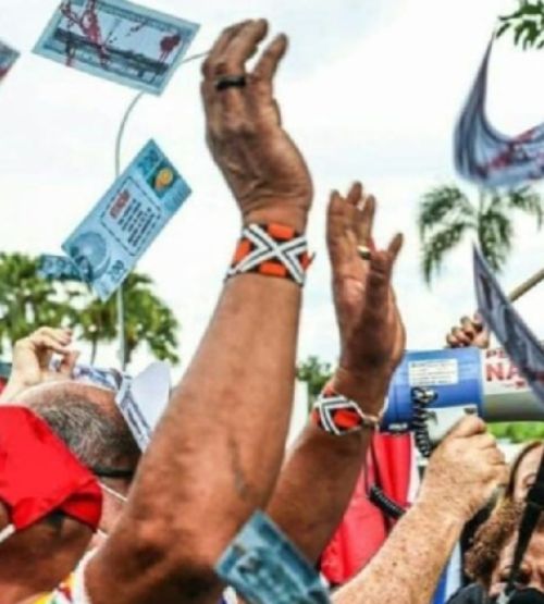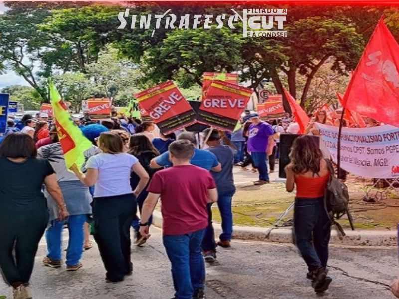 Na foto, empregados se manifestam na greve em PE (Reprodução/Sindsep-PE)