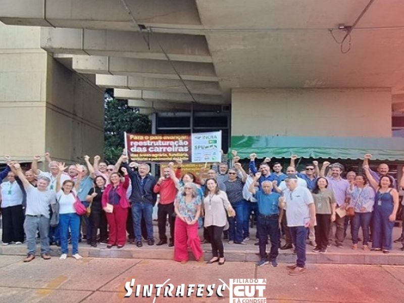 Servidores promoveram ato, na frente do MGI, durante a reunião Foto: Sindsep/DF