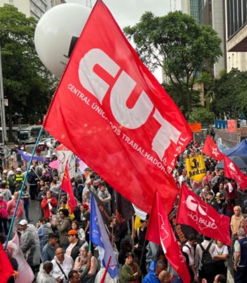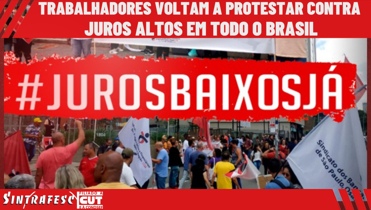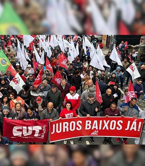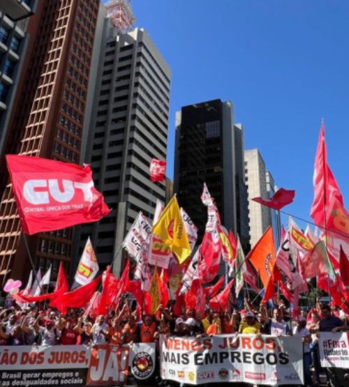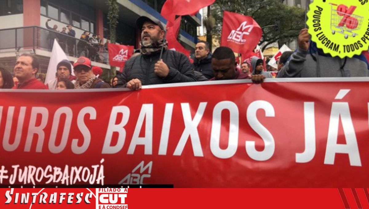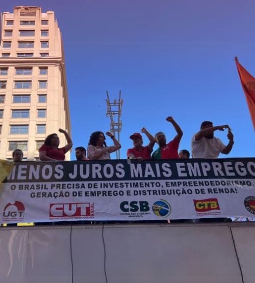 Vice-presidenta da CUT, ,Juvandia Moreira, fala aos trabalhadores em ato contra os juros altos - ROBERTO PARIZOTTI (SAPÃO)