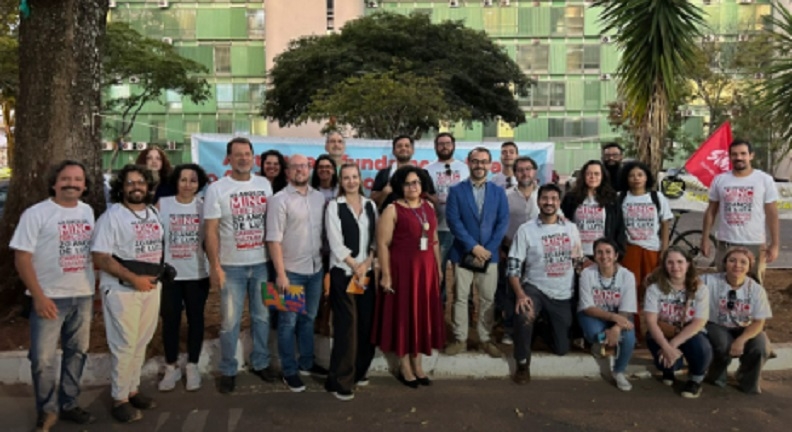 Servidores do MinC e de órgãos vinculados fizeram um ato em frente ao MGI, nesta segunda (29), para pressionar por avanços nas negociações da reestruturação da carreira da Cultura. A mobilização acompanhou a reunião do GT entre MGI e MinC, que foi considerada positiva pelos representantes do ministério.