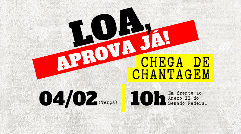 O ato pelo fim da chantagem do Legislativo e aprovação da LOA será realizado a partir das 10h, em frente ao Anexo II do Senado Federal. A participação de todos os servidores é muito importante para pressionar a Comissão Mista de Orçamento a colocar a LOA em votação.