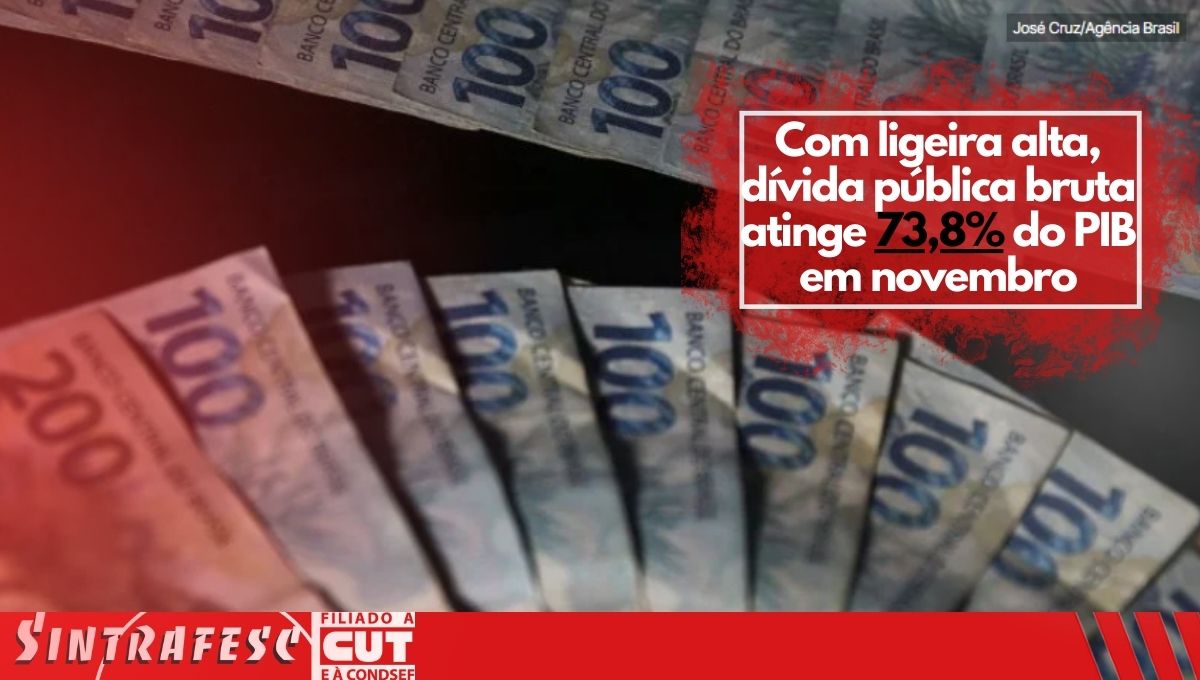 Em relação ao PIB (Produto Interno Bruto), a dívida pública bruta fechou novembro em 73,8%, contra 73,7% no mês anterior, sob impacto dos juros nominais apropriados (aumento de 0,6 ponto percentual), e do efeito da variação do PIB nominal (redução de 0,5 p.p.).