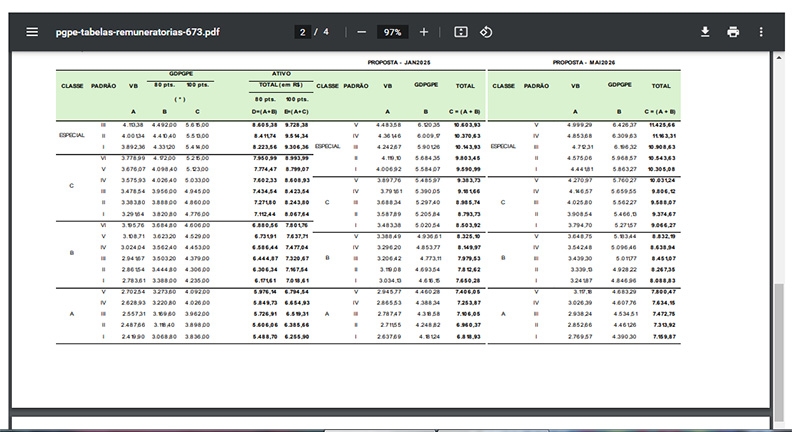 Importante destacarmos que, a partir da aplicação dos índices de correção dos steps da progressão funcional, as novas tabelas melhoram um pouco a proposta de reajuste do governo apresentada anteriormente.