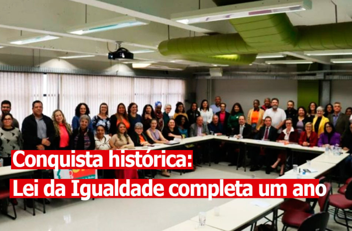 Importante instrumento de promoção de justiça social e cidadania, a lei 14.611, da igualdade salarial completou um ano nesta segunda-feira (15). A data foi celebrada em um encontro entre o Ministério do Trabalho, Ministério das Mulheres e o movimento sindical representado pela CUT, demais centrais, além de dirigentes de entidades filiadas, realizado em São Paulo, na sede do Departamento Intersindical de Estatística e Estudos Socioeconômicos (Dieese).
