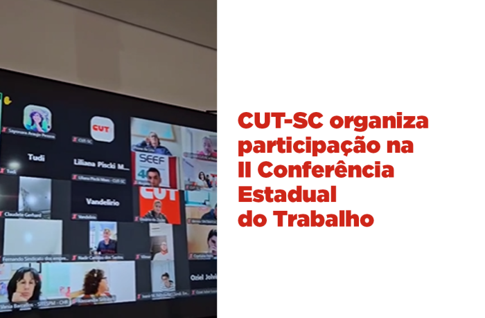 Mais de 40 dirigentes sindicais CUTistas de diferentes categorias de todo o estado participaram, na segunda-feira (22), de uma reunião virtual organizada pela CUT-SC para preparar a presença da Central na etapa estadual da II Conferência Nacional do Trabalho (II CNT). O encontro discutiu a metodologia e os eixos da conferência, encaminhou a criação de um grupo responsável por construir as propostas da CUT-SC e definiu os critérios para escolha dos representantes.