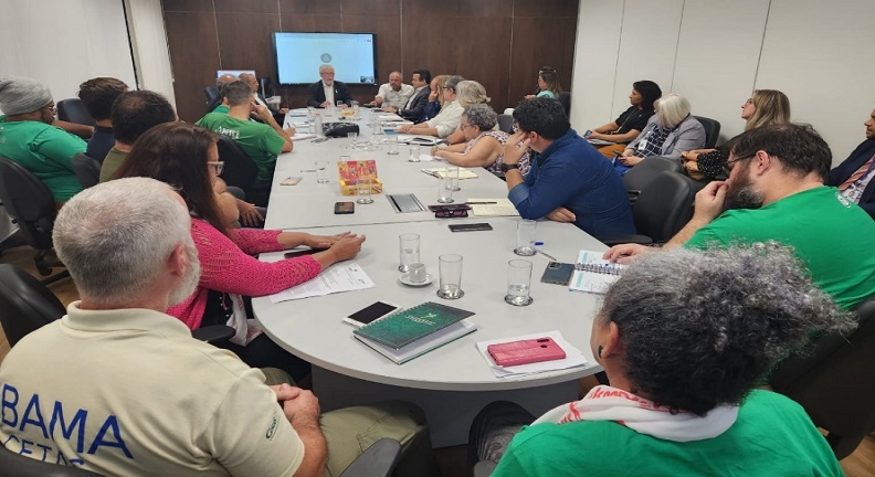 Condsef/Fenadsef, representantes do seu departamento da Area Ambiental (Dentma), e representantes da Ascema Nacional participaram da 3ª reunião da mesa setorial e específica do Meio Ambiente. O encontro aconteceu na última sexta-feira, 16, no Ministério da Gestão e Inovação em Serviços Públicos (MGI) e contou com a presença dos secretários de Relações do Trabalho e Gestão de Pessoas, José Lopez Feijóo e José Celso Cardoso. Participaram também o presidente do ICMBio, Mauro Pires, o presidente do Ibama, Rodrigo Agostinho, além de outros representantes dos diversos setores da Area Ambiental.