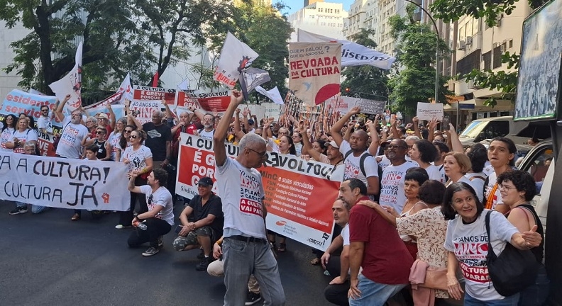 Em greve que já alcança 22 estados e o Distrito Federal, servidores da Cultura realizam um ato nessa terça-feira, 20, em frente ao Palácio Capanema, que foi reinaugurado hoje no Rio de Janeiro. Representantes da categoria puderam entregar a pauta ao presidente Luiz Inácio Lula da Silva que participa da atividade.
