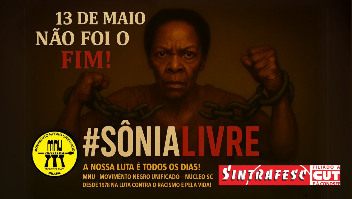 Amanhã, 13 de maio, às 15h, o Movimento Negro Unificado – Núcleo SC convoca sindicatos, estudantes, movimentos sociais e toda a população a participarem de uma manifestação silenciosa em frente à Câmara de Vereadores de Florianópolis. Com faixas e cartazes, protestaremos por 51 minutos — tempo que representa a idade de Sônia Maria de Jesus, símbolo de uma luta que ainda não terminou.