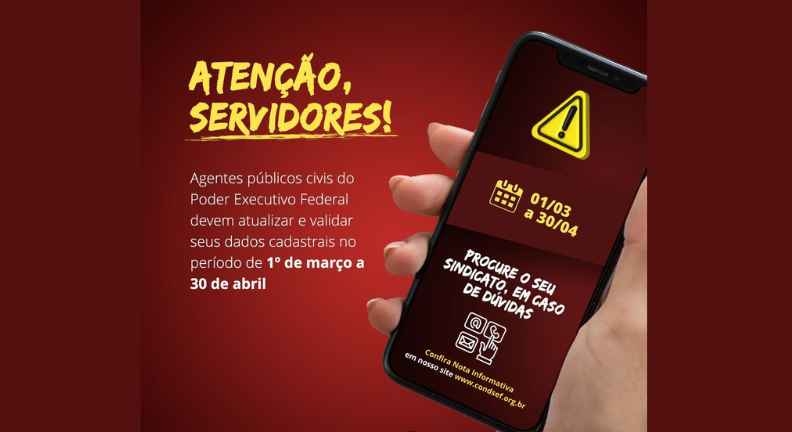 A atualização deve ser realizada por meio da plataforma SouGov.BR. Entidades filiadas à Condsef/Fenadsef estão disponibilizando auxílio àqueles servidores e servidoras que tiverem qualquer dúvida quanto ao processo. Se precisar de ajuda, procure o sindicato em seu estado.