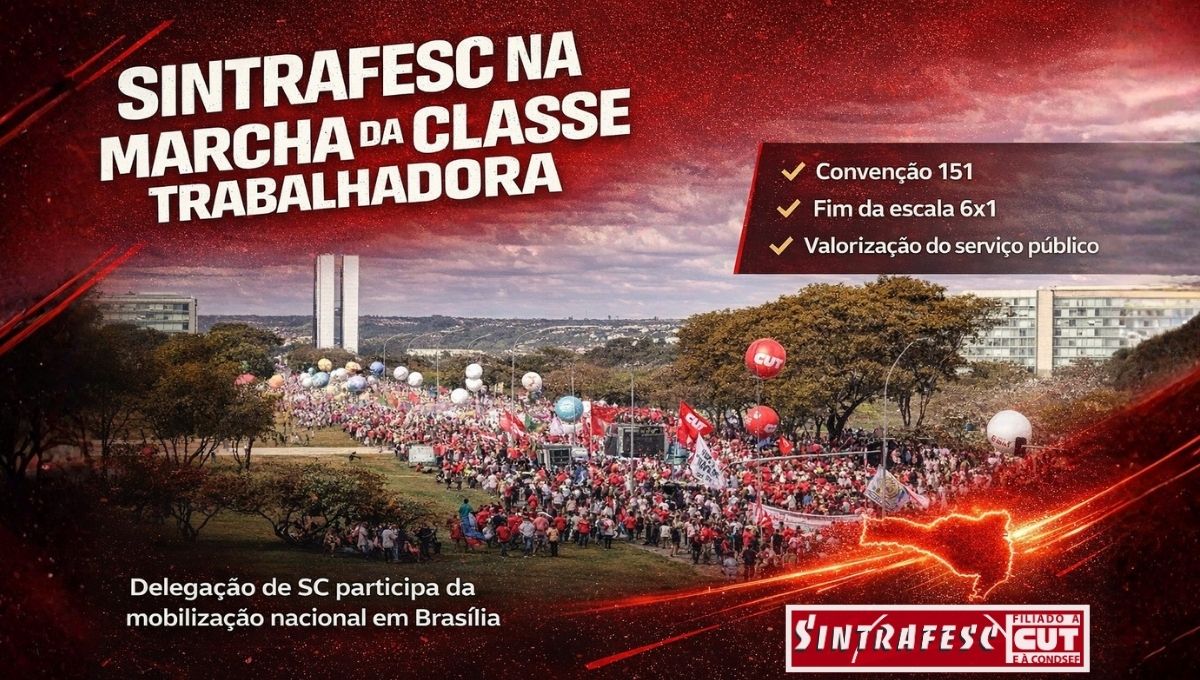 A participação do sindicato faz parte de uma ampla articulação nacional. Em Santa Catarina, a CUT organiza uma caravana com ônibus saindo de diferentes regiões do estado, garantindo a presença da base catarinense na capital federal.